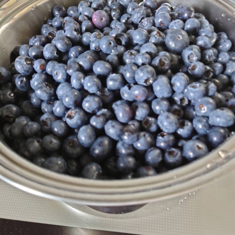 ①ブルーベリーは洗って実に付いている茎みたいなものは絶対に取る