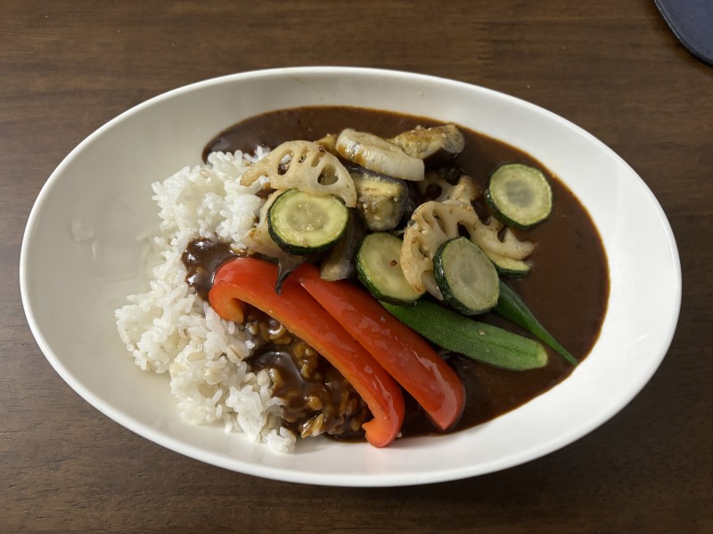 例えば、炒めた野菜をトッピングして野菜カレー